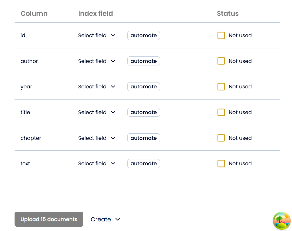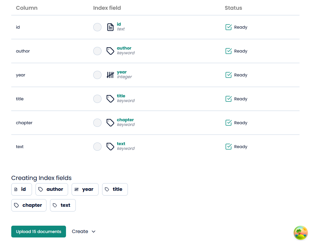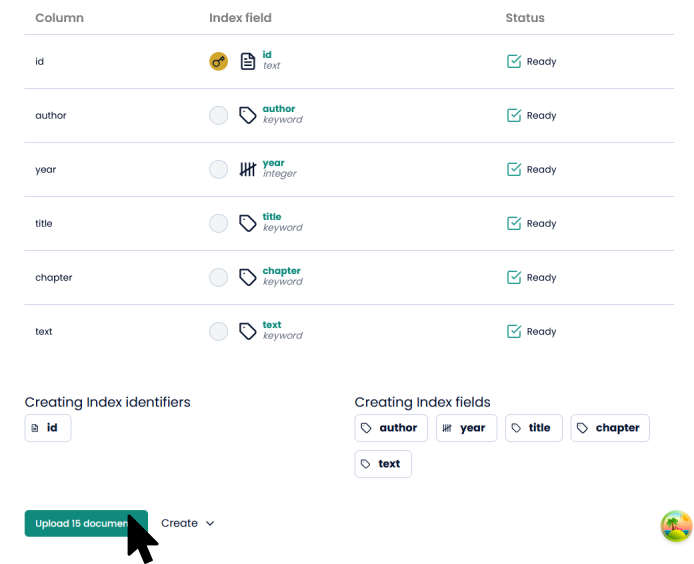 Now, you can press “Upload 15 documents”, which is the number of rows in the csv file.