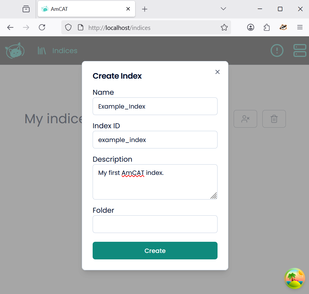 Now you can navigate to your indeces and find your newly made index: