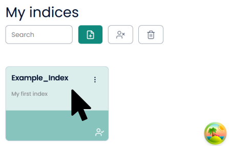 To modify the access to an index, the index has to already exist. For this example, I will refer to the index “Example Index” that we created in chapter 3 Document Storage. Nevertheless, all the steps apply to any other index.