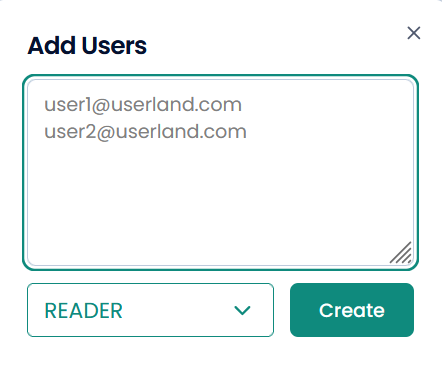 Now, you can add all the users’ emails, including your, with their respective roles. Click “Create” when you are done. To see the changes applied, you need to log-off and log-in again.